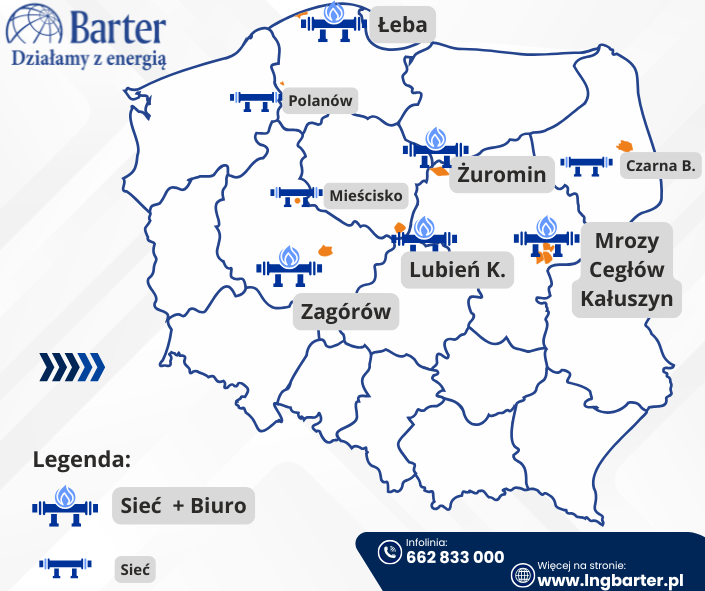 Od 1 lutego 2026 Barter S.A. rozszerzy działalność o miejscowości: Lubień Kujawski, Łeba, Mieścisko, Mrozy, Cegłów, Kałuszyn, Polanów, Zagórów, Żuromin